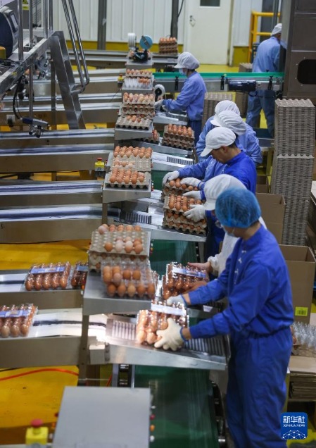 2月5日,在慈溪正大蛋业有限公司的车间内,工人把当天产的新鲜鸡蛋分类装箱,准备运往外地商超市场。临近春节,该企业近期日产新鲜鸡蛋60多万枚,保障上海、浙江、江苏等长三角地区的春节商超市场供应。慈溪正大蛋业有限公司产蛋鸡养殖规模产蛋鸡75万羽,年产鲜鸡蛋2.1亿枚。该企业蛋鸡养殖项目投资2.26亿元,养殖规模100万羽,是国内首批通过无抗产品认证的蛋鸡企业,以长三角商超销售和液蛋加工为主。