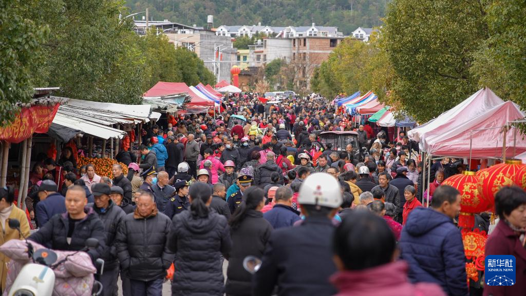 2月5日在福建省龙岩市武平县十方镇拍摄的“赴圩”现场。十方镇是客家人相对集中的乡镇,客家人称“赶集”为“赴圩”。新华社记者 周义 摄