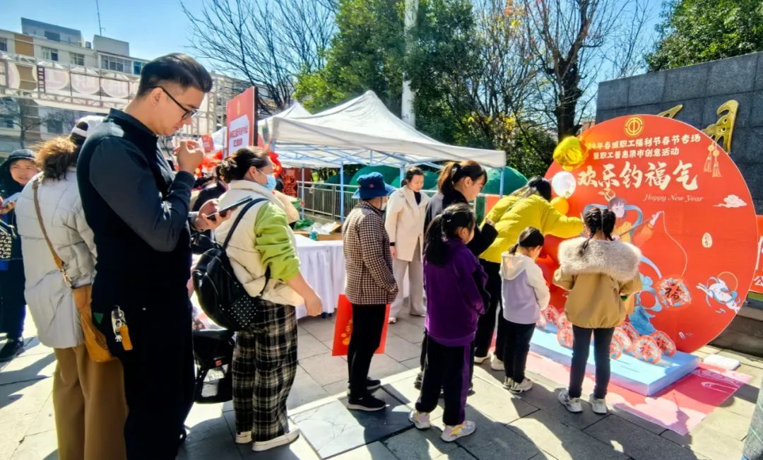 另一边,职工普惠集市区也是人气爆棚,30多个知名品牌商家云集,以低于市场价的特惠形式给职工带来了多种优惠和福利。坚果零食、腊味制品、蔬菜水果、日用百货等充满浓浓年味儿的年货,非遗糖画、剪纸等传统民俗文化作品,一个个趣味抽奖游戏让大家流连忘返。喜庆祥和、热闹欢快的氛围,让参与其中的职工群众笑脸盈盈。