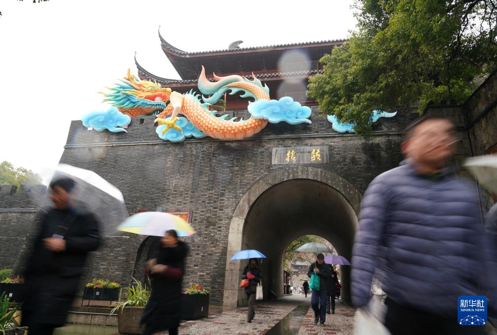 这是2月6日拍摄的杭州鼓楼。