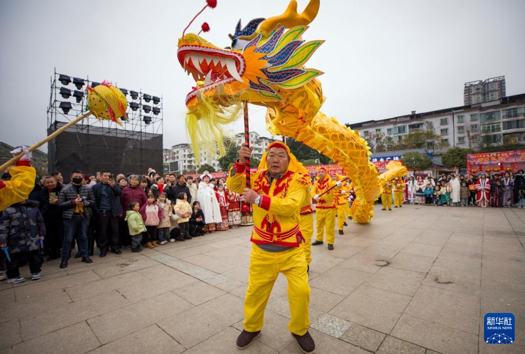 2月5日,人们在贵州省绥阳县舞龙迎接龙年春节的到来。