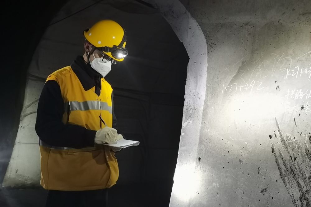 下了车,职工们拿着工具,一脚深一脚浅地沿着满是积雪的林间小道来到老虎沟隧道旁。天色渐黑,现场防护员赵海明和七名身穿黄色工作服的工友们按照流程,确认人员、工具,检查作业环境。“这就相当于战前准备,只有全部准备好,进洞了才能有条不紊。”赵海明说。