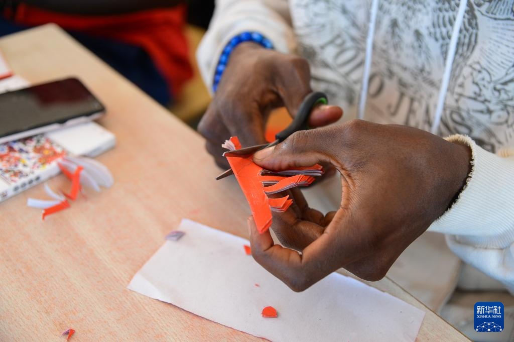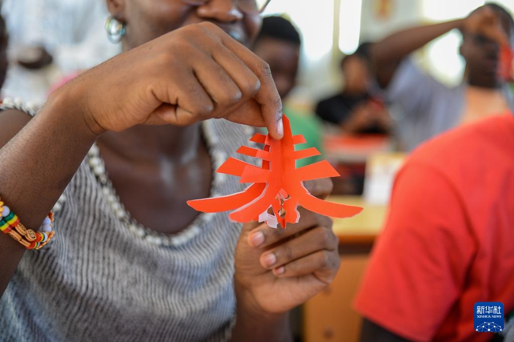2月8日,在喀麦隆雅温得,学生练习剪纸。