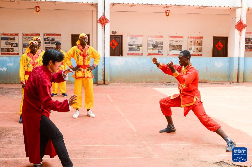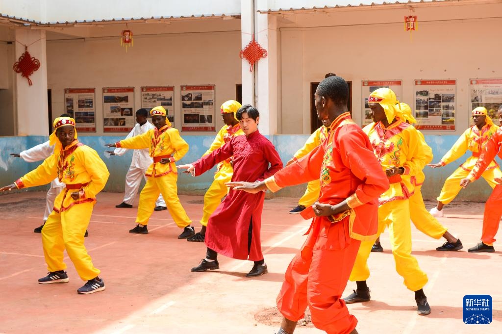 2月8日,在喀麦隆雅温得,学生们学习中国武术。