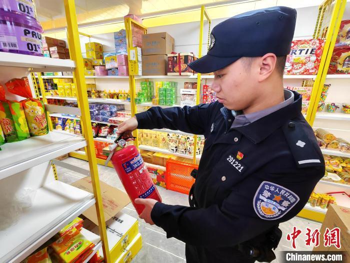 “你这个灭火器快到期了,要记得及时更换。”“货物不能把消防通道堵住。”经过近40分钟的巡逻,束李玮带着队员又开始对市场商铺内的消防设施进行检查。他说,春节期间,这里人员密集,消防安全容不得一点马虎。