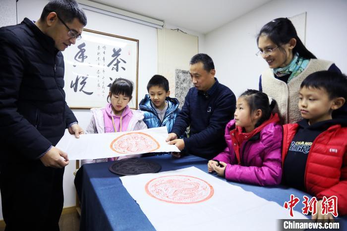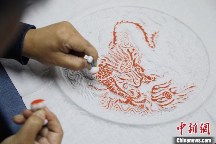 “龙行龘龘,欣欣家国”。一张纸,一碟墨,一拓包,一陶盘,一条活灵活现的腾飞之龙显现……泰安市级非遗岱宗传拓第五代传承人许修峰,将传拓技艺和龙文化交相融合,拓印出龙腾盛世的图案,以这种方式迎接农历甲辰龙年,为即将到来的新春佳节营造喜庆氛围。