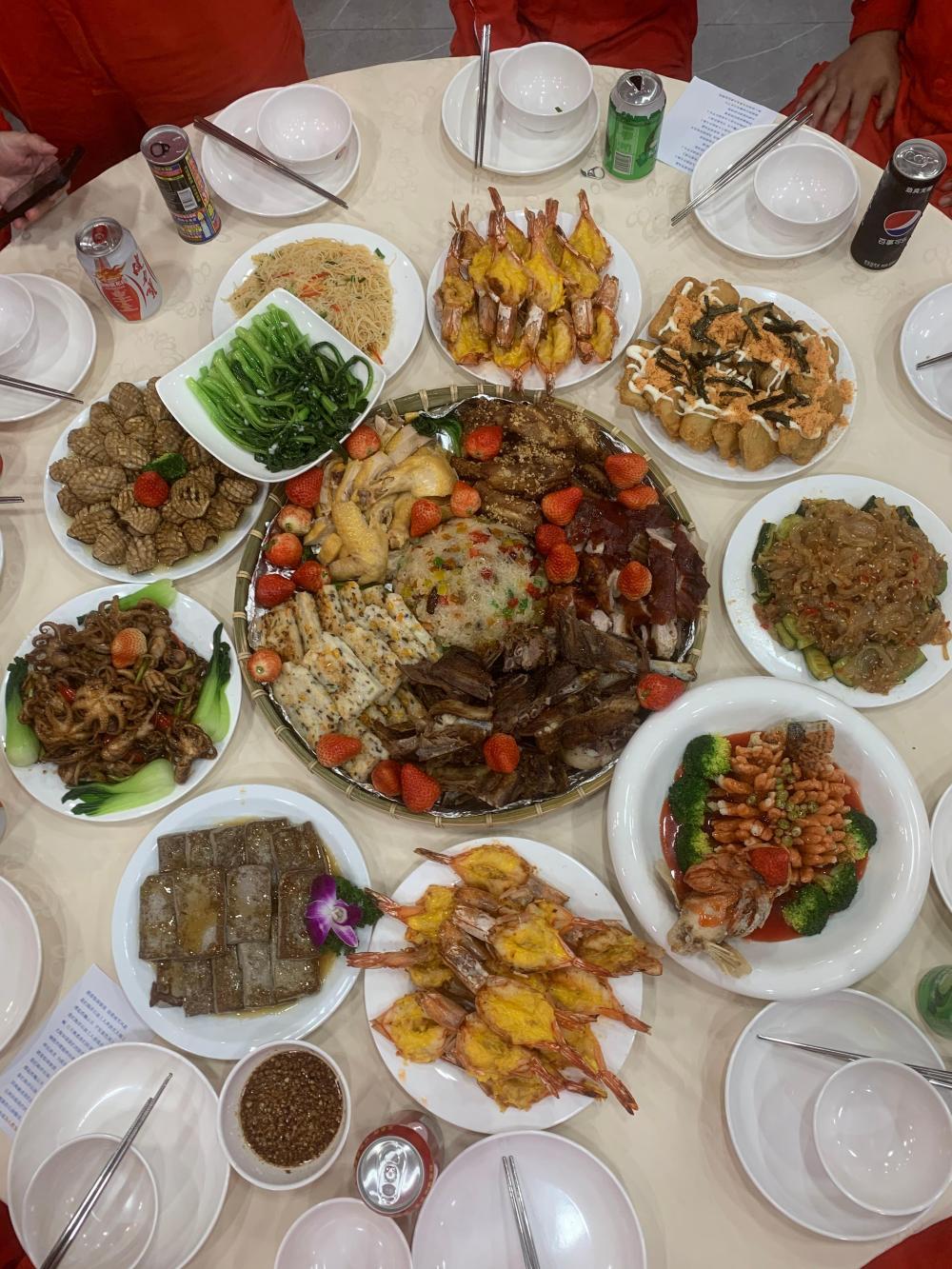 一道道菜肴摆上餐桌,春节期间坚守海上油气生产一线的作业者围桌齐坐,共度佳节。