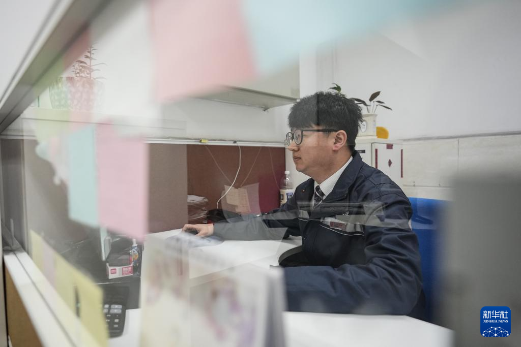 2月9日,孙雷在巡查中发现问题,通过手机将问题转给同事处理。新华社记者 潘昱龙 摄