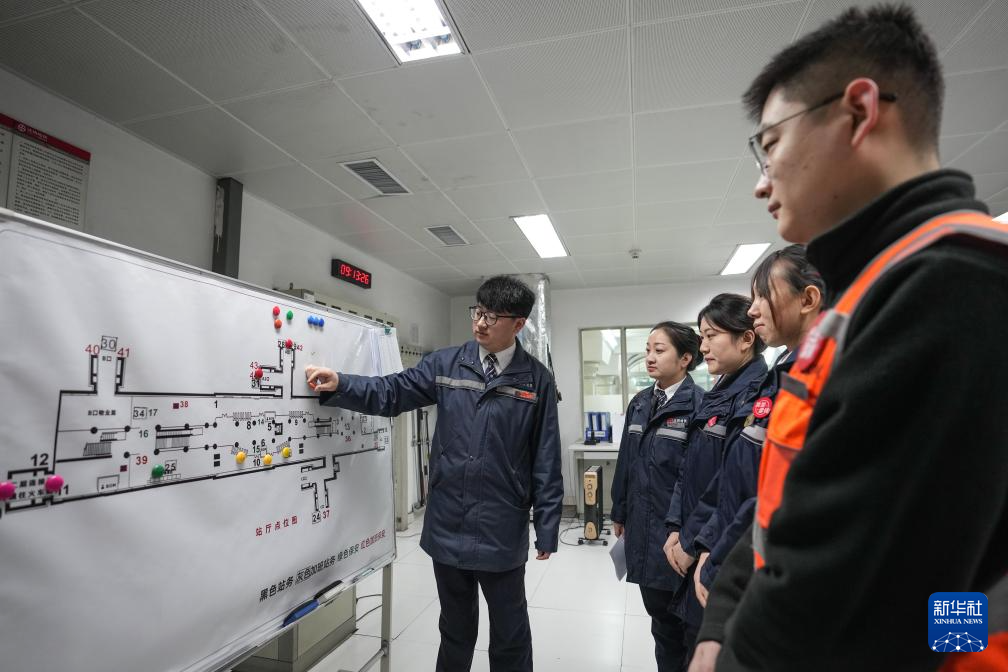 2月9日,孙雷根据客流情况为同事布置工作任务。新华社记者 潘昱龙 摄