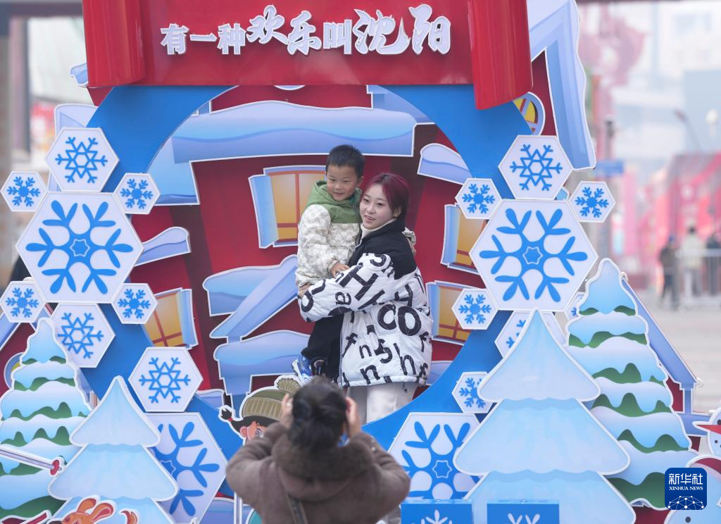 2月9日,游客在沈阳中街拍照留影。新华社记者 李钢 摄