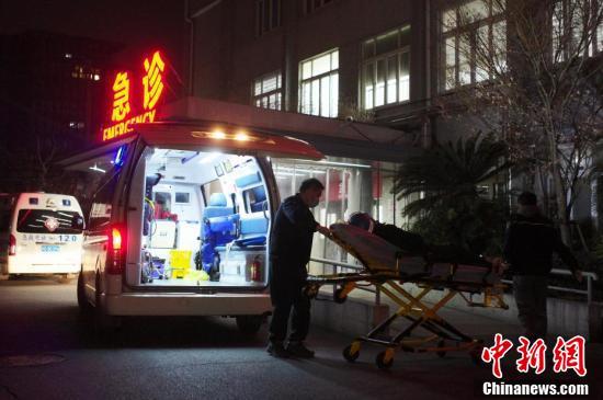 2月9日,除夕当晚,在上海市三级甲等医院——同济医院,一线值班医护人员在抢救室、留观区和输液室之间忙碌,确保民众平安过年。图为120救护车将患者送至上海市同济医院急诊室救治。中新网记者 殷立勤 摄