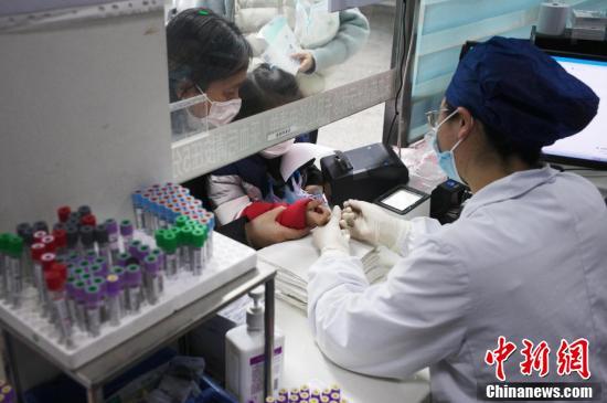 在上海市同济医院,医护人员为孩子抽血化验。中新网记者 殷立勤 摄