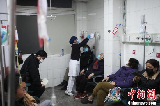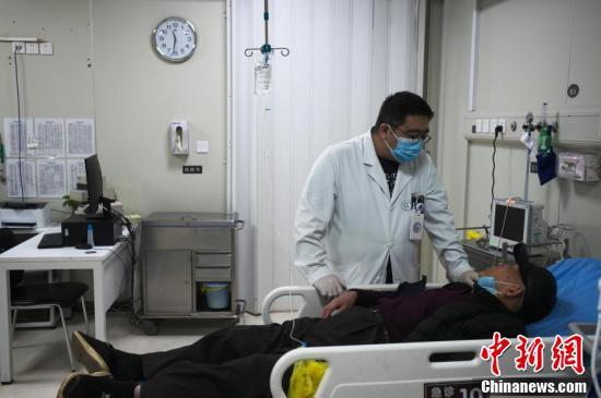 医护人员为患者换输液袋。中新网记者 殷立勤 摄
