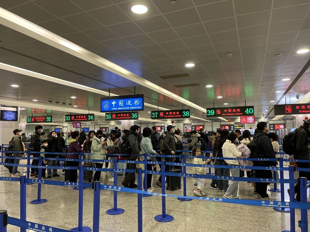 针对出境团队多、家庭旅客多、孩童占比高等春节客流特点,上海边检总站上海机场边检站进一步优化通道设置,将携带儿童的家庭旅客引导至紧邻快捷通道的人工通道通关,为他们提供人性化通关帮助,切实营造有序高效的口岸通关环境。