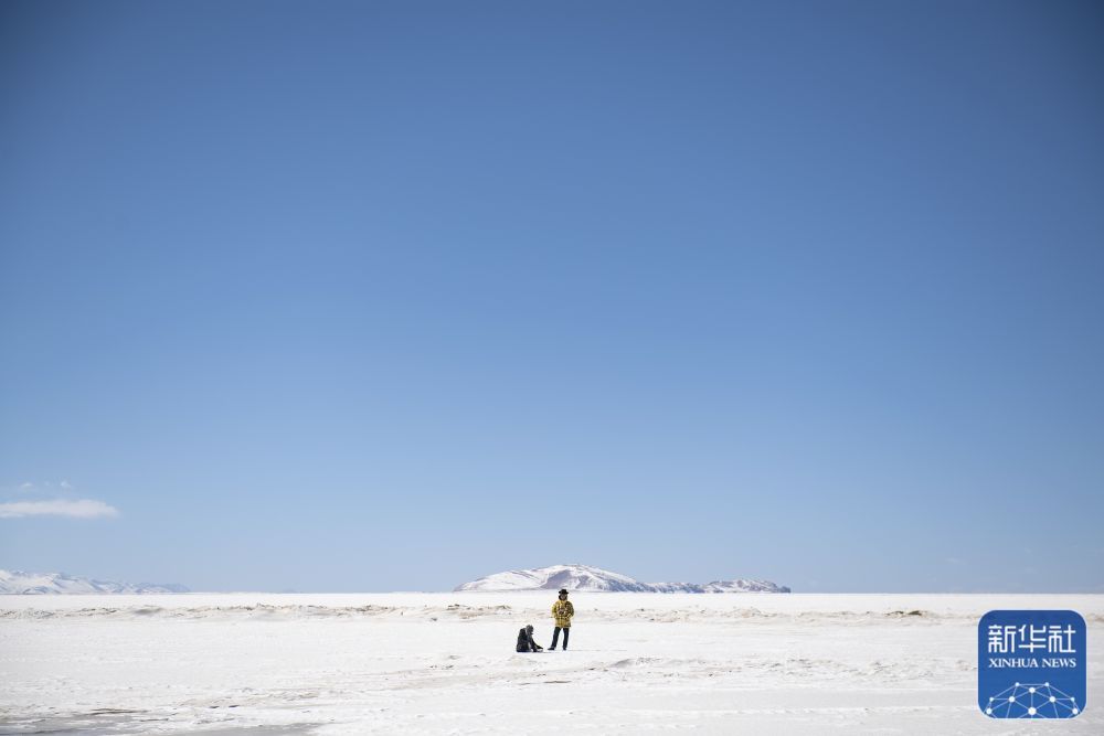 2月8日,游客在纳木错冰封的湖面上休息。新华社记者 孙瑞博 摄