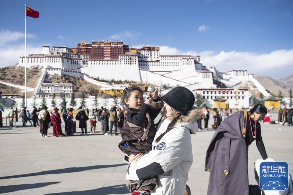 2月11日,人们在布达拉宫广场上游玩。新华社记者 孙瑞博 摄