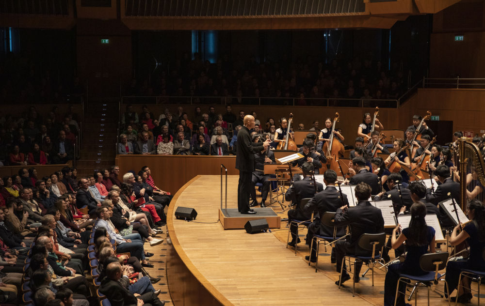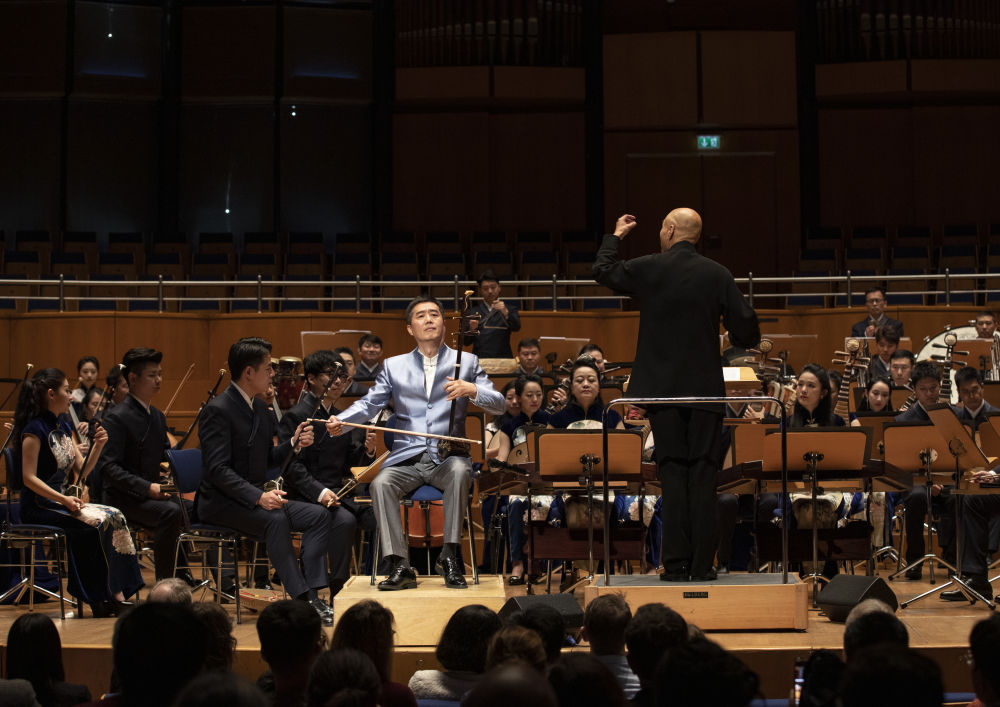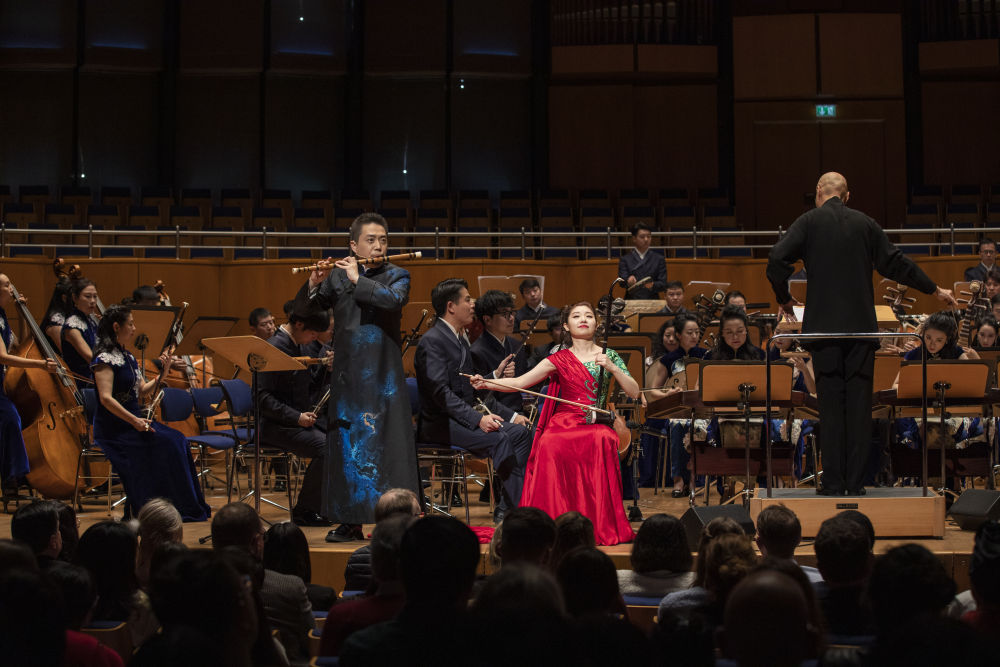 2月10日,在德国杜塞尔多夫市音乐厅,中央民族乐团团长赵聪与乐团共同演奏曲目《冬至·福吉天长》。