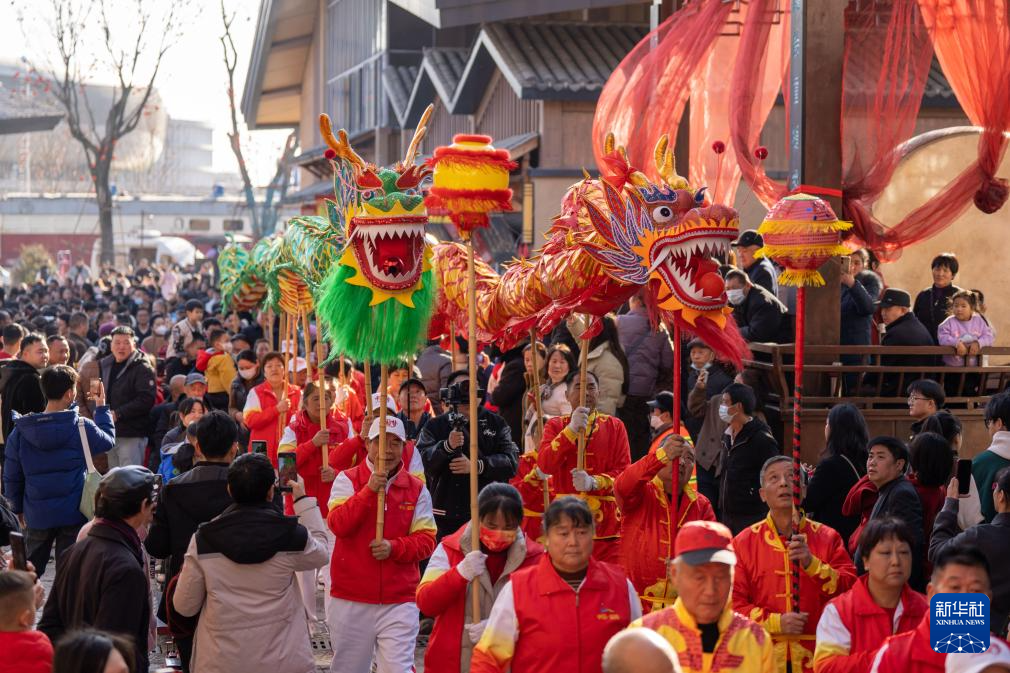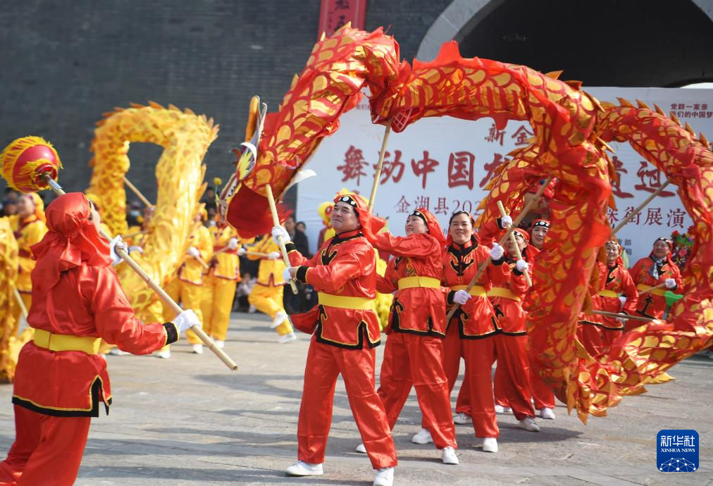 2月11日,民间艺人在江苏省淮安市金湖县尧帝古城表演舞龙。新华社发(陈义宝摄)