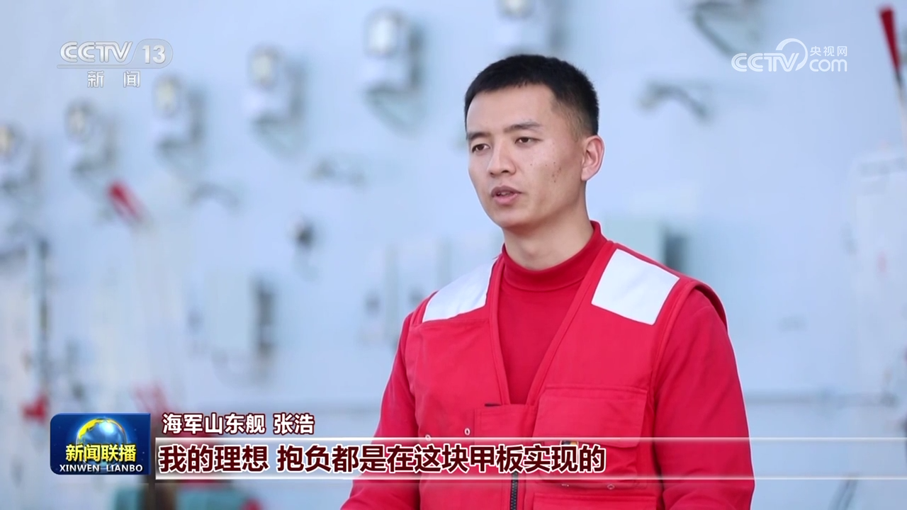 央视网消息(新闻联播):2023年,我国第一艘国产航母山东舰三赴远海、砺剑大洋,一批批舰员在航空母舰的甲板上放飞青春和梦想。今天(2月11日)的《新春走基层》,跟随记者走近山东舰上春节值班的官兵们,去了解他们的奋斗故事。