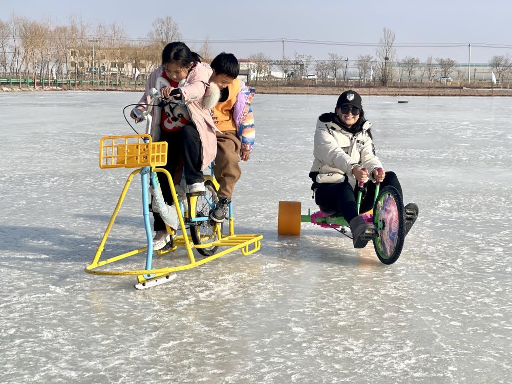 游客在四十里店村的稻渔空间生态观光园体验冰雪乐趣。新华社记者 苏醒 摄