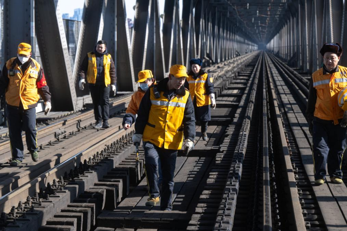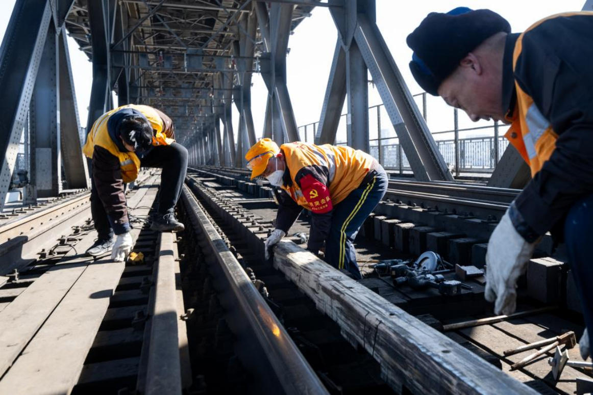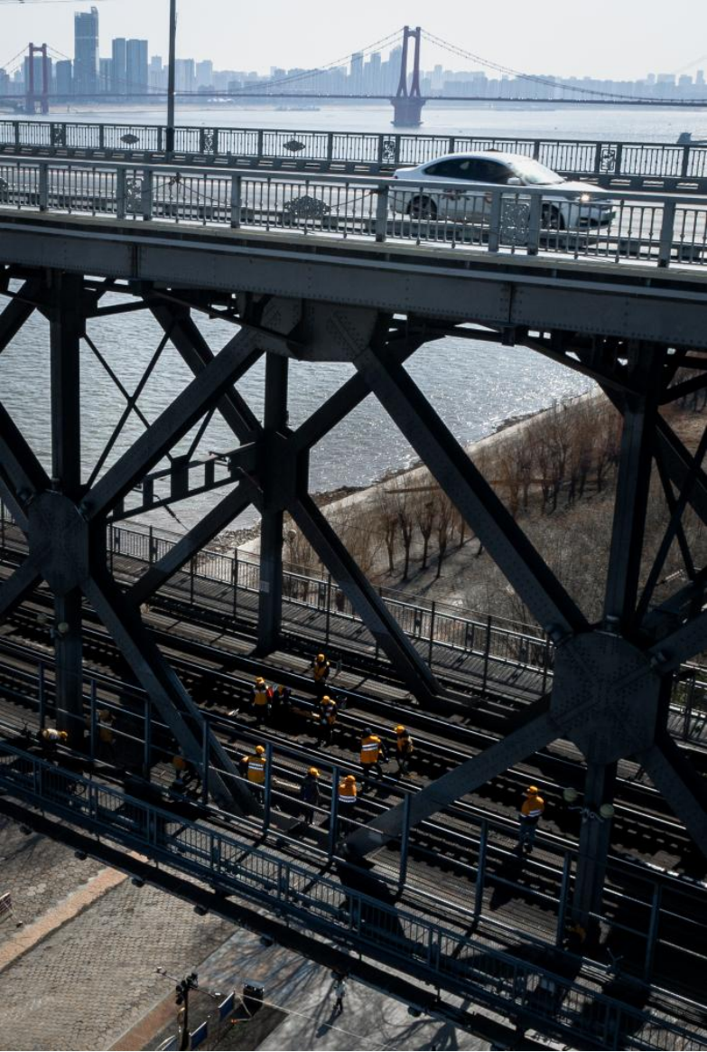 农历大年初三,湖北武汉阳光明媚。“万里长江第一桥”——武汉长江大桥宛若一条巨龙飞架于江水之上,气势恢宏。身穿工作服的陈卿明和同事,低头、弯腰,循着大桥铁道仔细地检视钢梁、枕木。
