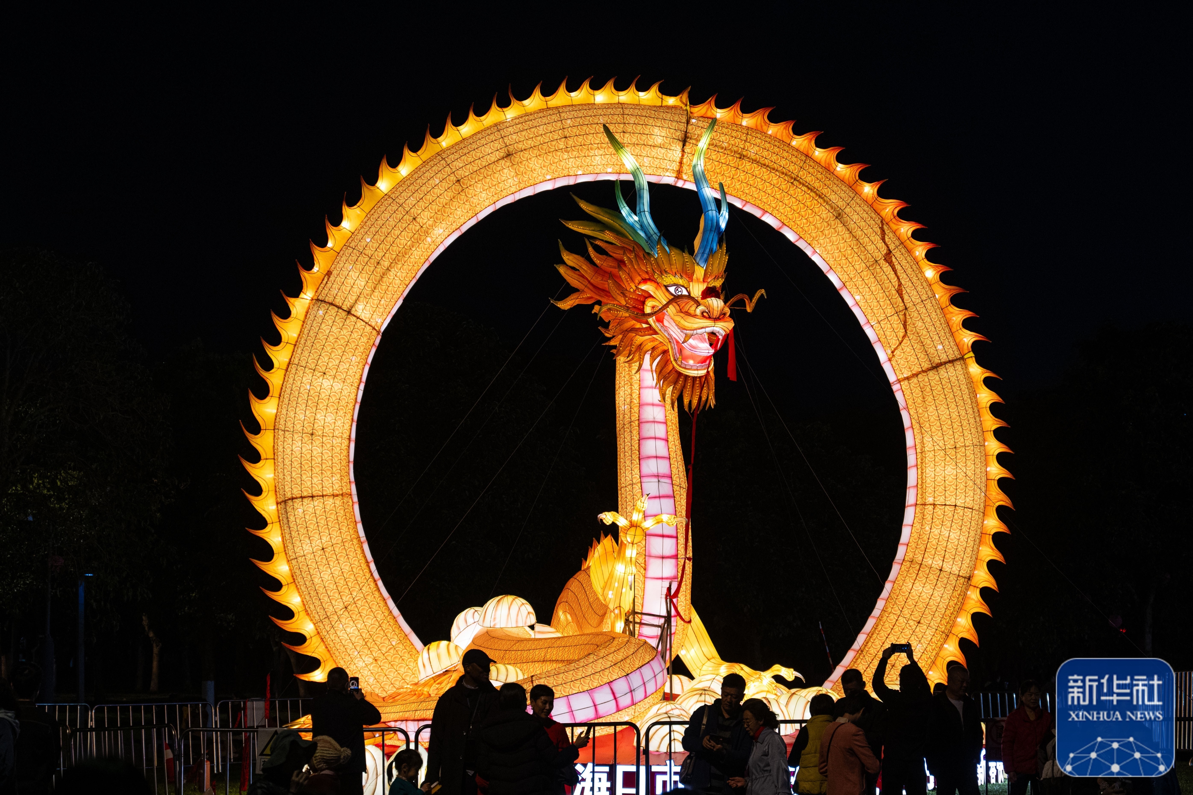 2月10日在海口市万绿园万春会上拍摄的龙型花灯。新华社记者 蒲晓旭 摄