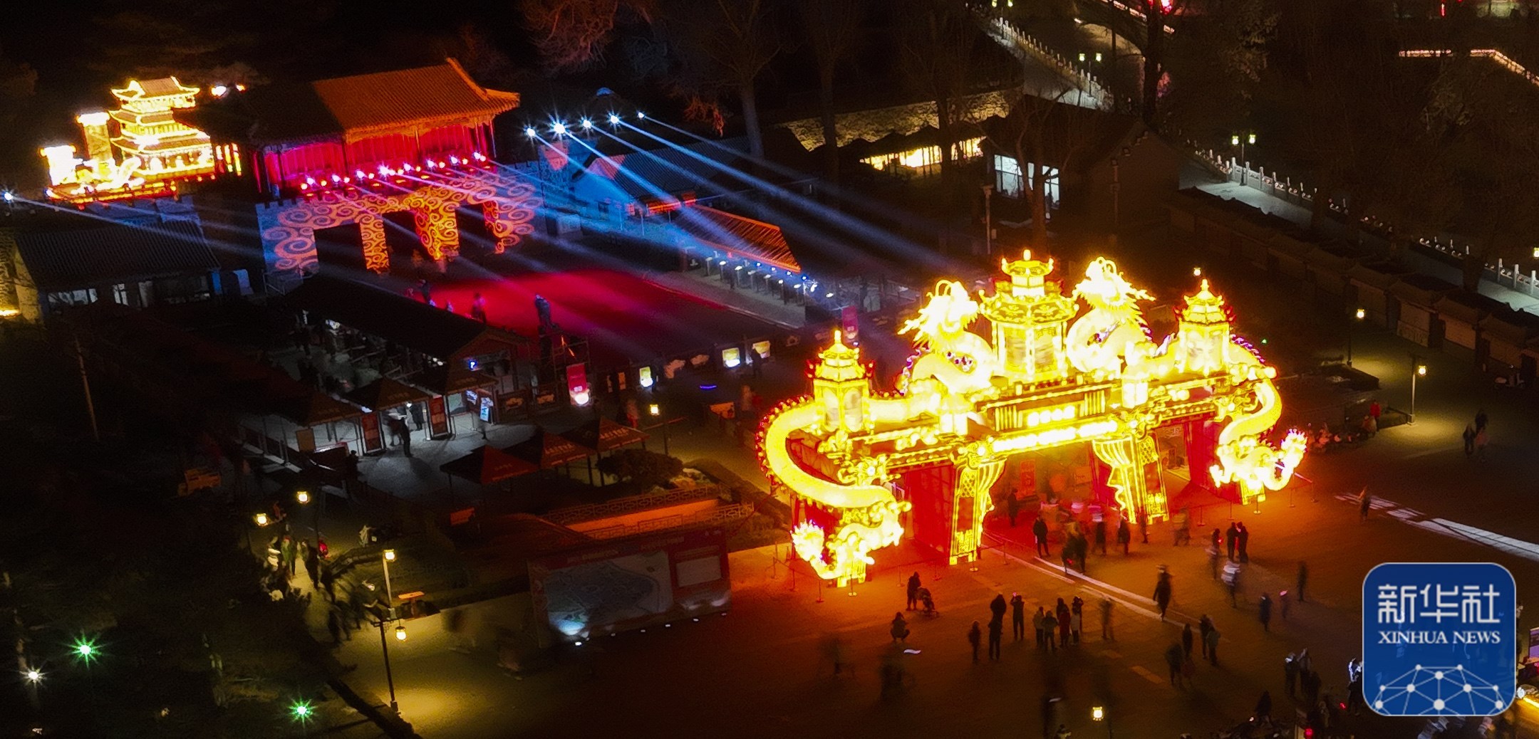 2月11日,河北省承德市避暑山庄新春灯会上的龙灯耀眼夺目(无人机照片)。新华社发(刘满仓摄)