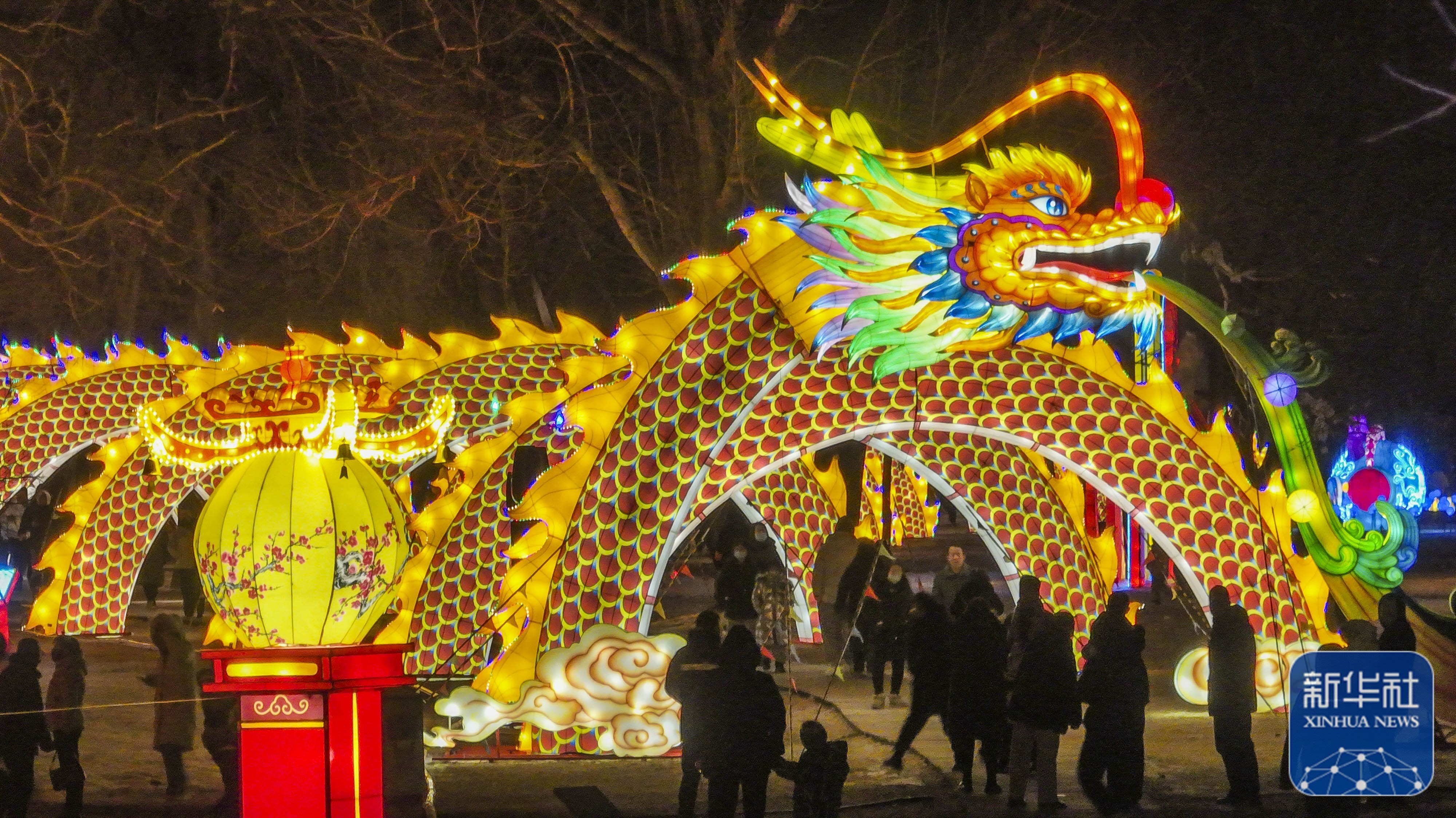 在河南洛阳王城公园拍摄的龙造型灯笼(2月11日摄)。新华社记者 朱祥 摄