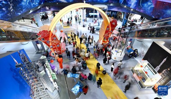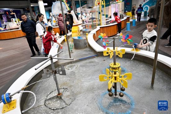 2月13日,小朋友在宁夏科技馆体验科普项目。