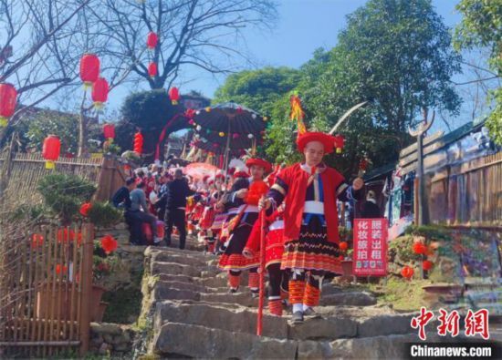 中新网清远2月13日电(记者 程景伟)长鼓舞热情奔放、瑶族婚俗巡游特色鲜明、瑶歌对唱欢乐无限......龙年春节期间,以“世界春节 中国文化 瑶族风情”为主题的“龙年玩坡节”春节民俗文化主题活动在广东清远连南千年瑶寨举行。连日来,丰富多彩的民俗活动在这里轮番上演。