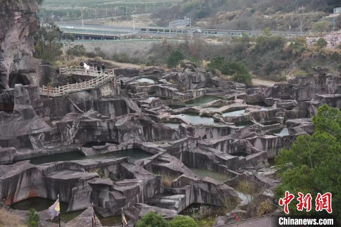 蛇蟠岛采石遗迹。 中新网记者 范宇斌 摄