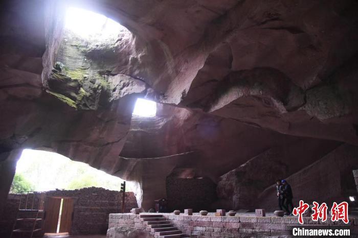 游人参观蛇蟠岛古洞人家。 中新网记者 范宇斌 摄