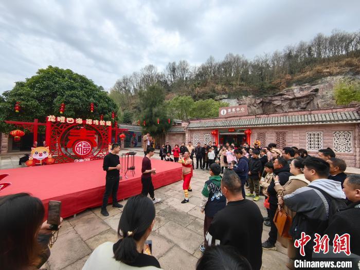 游人在蛇蟠岛景区观看杂技表演。 中新网记者 范宇斌 摄