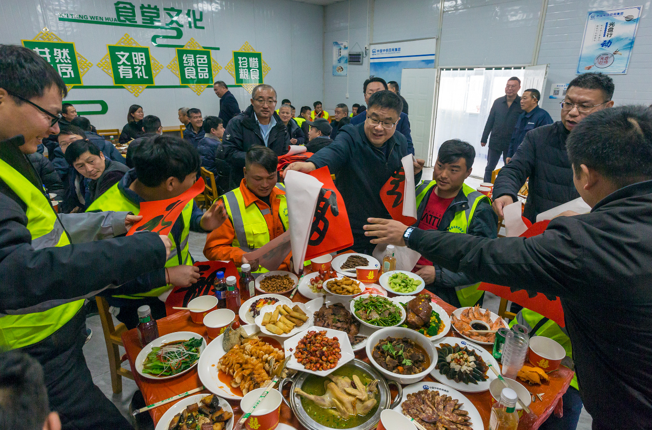 当天中午,慰问组一行与项目职工、产业工人一同品尝了暖心新春“家宴”,并为工友们送上精心准备的春联和“福”字,一副副寓意吉祥的对联,把“娘家人”最美好的祝福送到一线职工的手中。