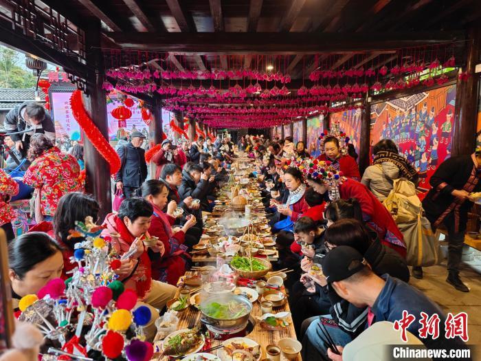 2024年全国春节“村晚”暨“春到万家”群众文化主会场活动在柳州市三江侗族自治县程阳八寨景区举办,春节期间每天举办百家宴场场爆满,吸引游客量近10万人次,较2023年同期增长84.19%;北海银滩举办“新春行大运·欢乐喜龙龙”春节奇趣庙会,快闪、巡游、舞龙、网红舞“科目三”互动接连不断;南宁宾阳县开设炮龙星光市集、那里市集,组织举行炮龙节百龙舞宾州活动、宾阳年菜美食大赛等活动;百色靖西市举办新春民俗大巡游活动,民俗文化盛宴引得数十万民众围观,场面热闹非凡。