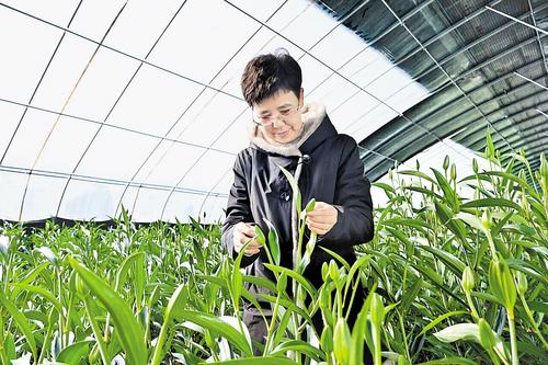 “这茬百合花骨朵长出来了,眼瞅着就能上市。”