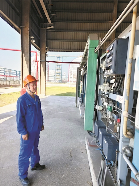韩宝忠在观察乙烯压缩机系统运行情况