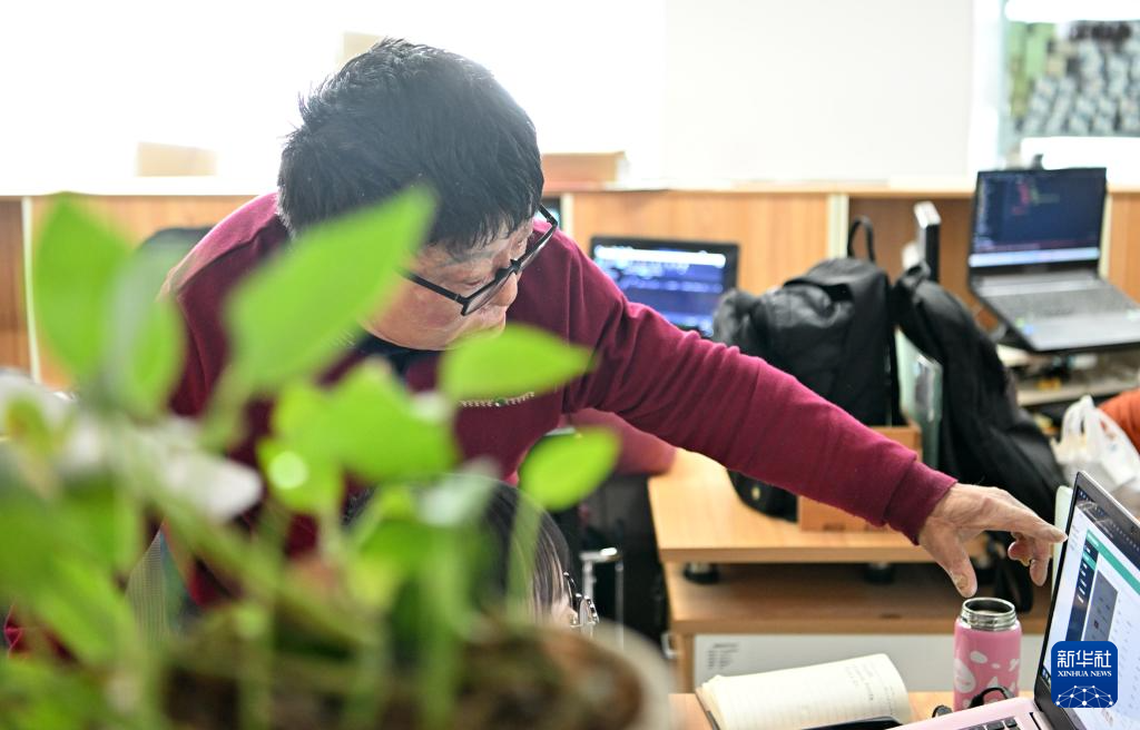 2月22日,残疾人员工在创美助残基地的就业项目部工作。