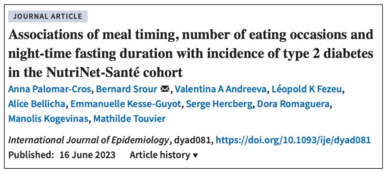 同样在2023年,发表在《国际流行病学杂志》上的一项研究显示,与习惯性早晨8点之前吃早餐的参与者相比,9点之后才吃早餐的参与者罹患2型糖尿病的概率高出59%。②