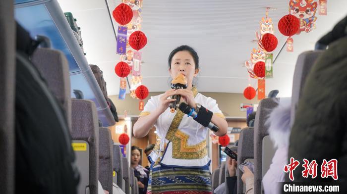 “元宵佳节喜相逢,祝愿旅客朋友们皆得所愿……”列车驶出银川站后不久,“喜迎元宵灯谜会”在主持人的祝福声中活动缓缓拉开帷幕。长笛、葫芦丝演奏,让旅客感受到民族乐器的独特魅力。