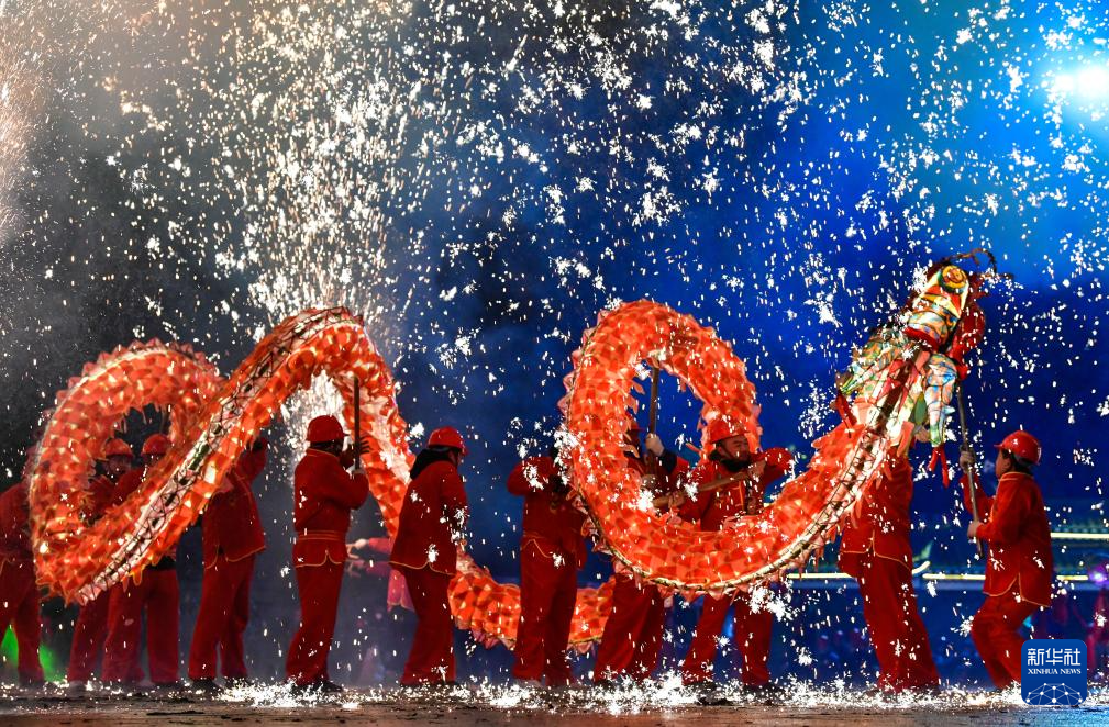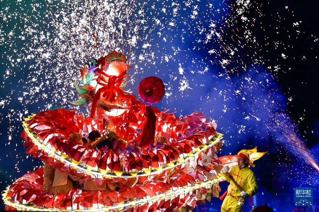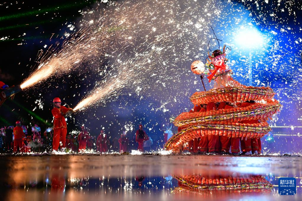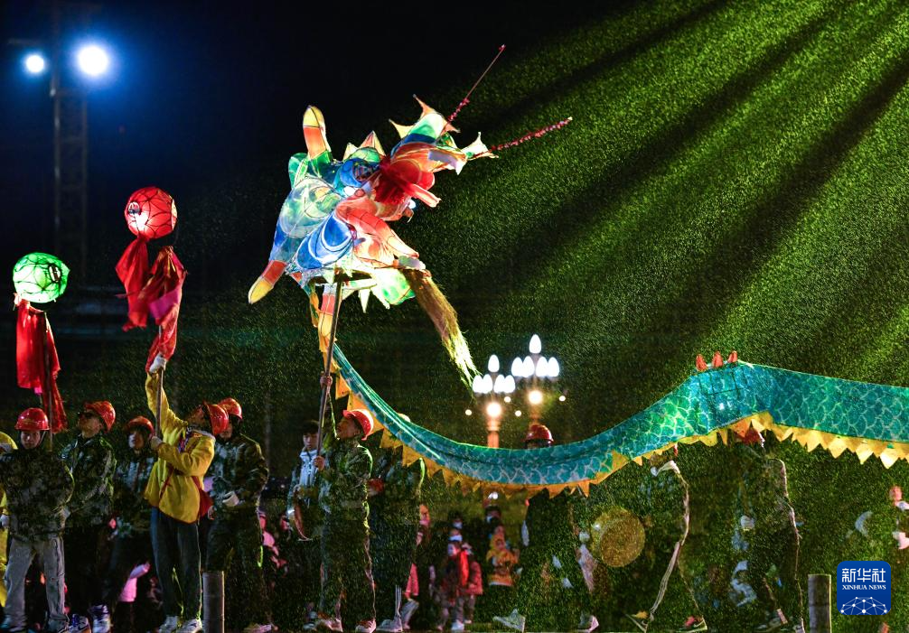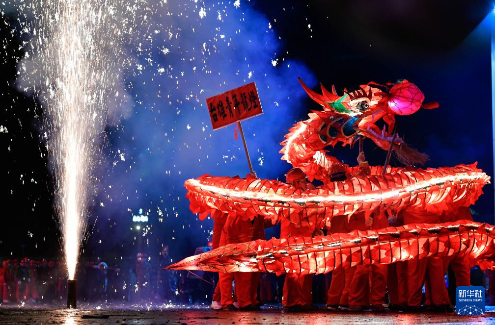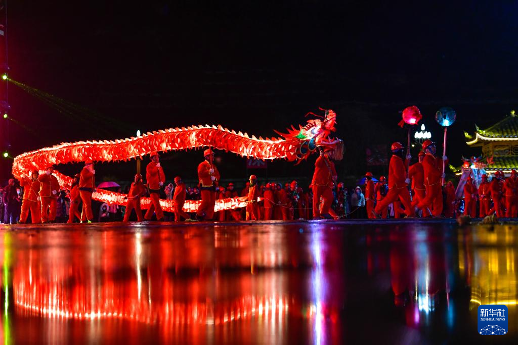 2月23日晚,人们在贵州省台江县参加苗族“舞龙嘘花”活动。新华社记者 杨文斌 摄