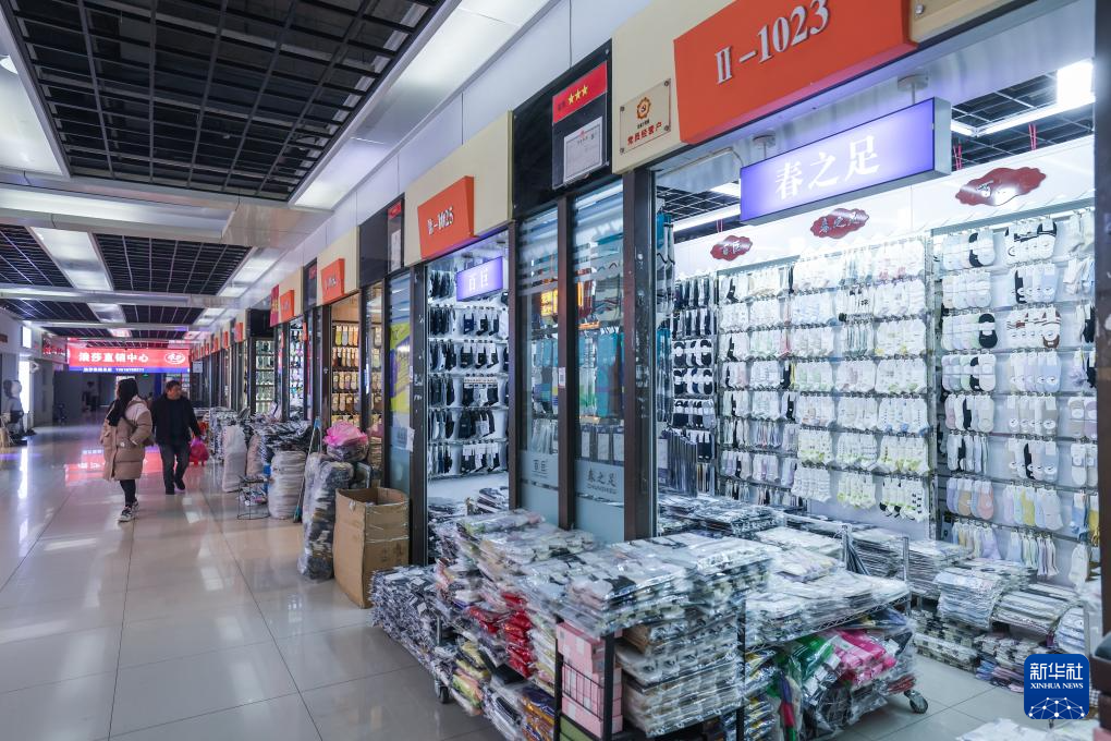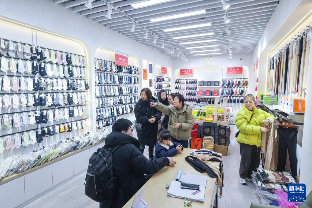 2月24日,位于诸暨大唐街道的中国大唐袜业城内,顾客在选购袜子。新华社记者 徐昱 摄