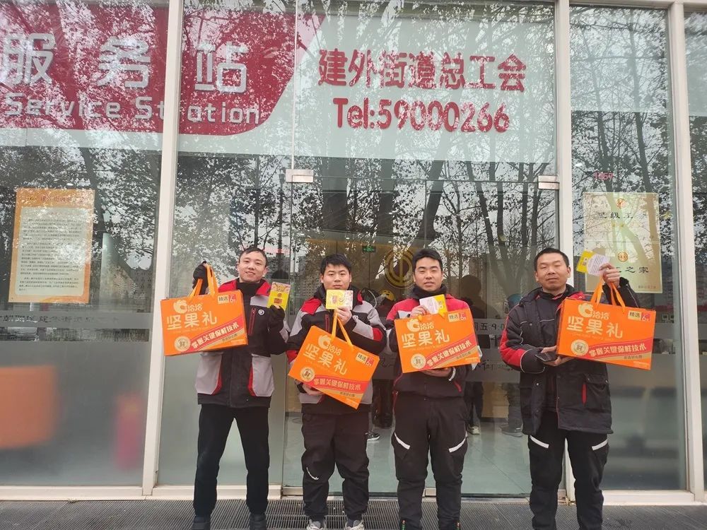 为了让“新”邻里感受到温暖,建外街道总工会特别准备了坚果套装,每一份都蕴含着工会对“新”邻里幸福的祝愿。“没想到我们在这里也能过上元宵节,还给我们送慰问品,工会对我们也很亲和,感觉自己不是外人了,今年要努力奋斗,送好每一单外卖。”小李的话道出了很多“新”邻里的心声。
