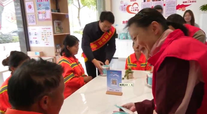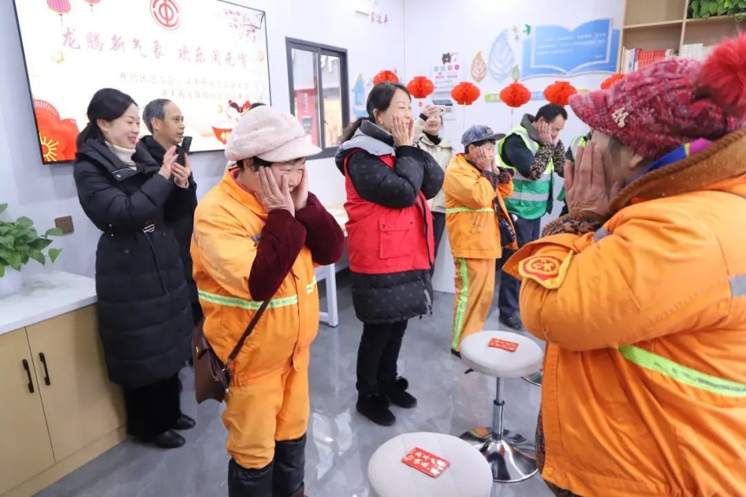 “这个保温杯我太喜欢了,不大不小,装在口袋里正合适”“这姜茶,喝上一口,心里暖暖的”“在这儿歇歇脚,非常方便”......在宜昌市秭归县工人文化宫工会驿站,环卫工人们接过装有保温杯、汤圆等物品的暖心大礼包,满怀感激地说道。