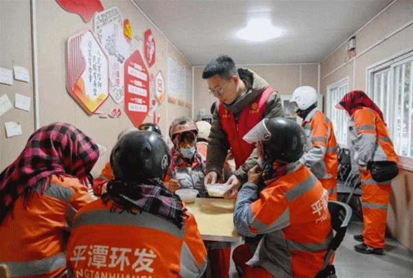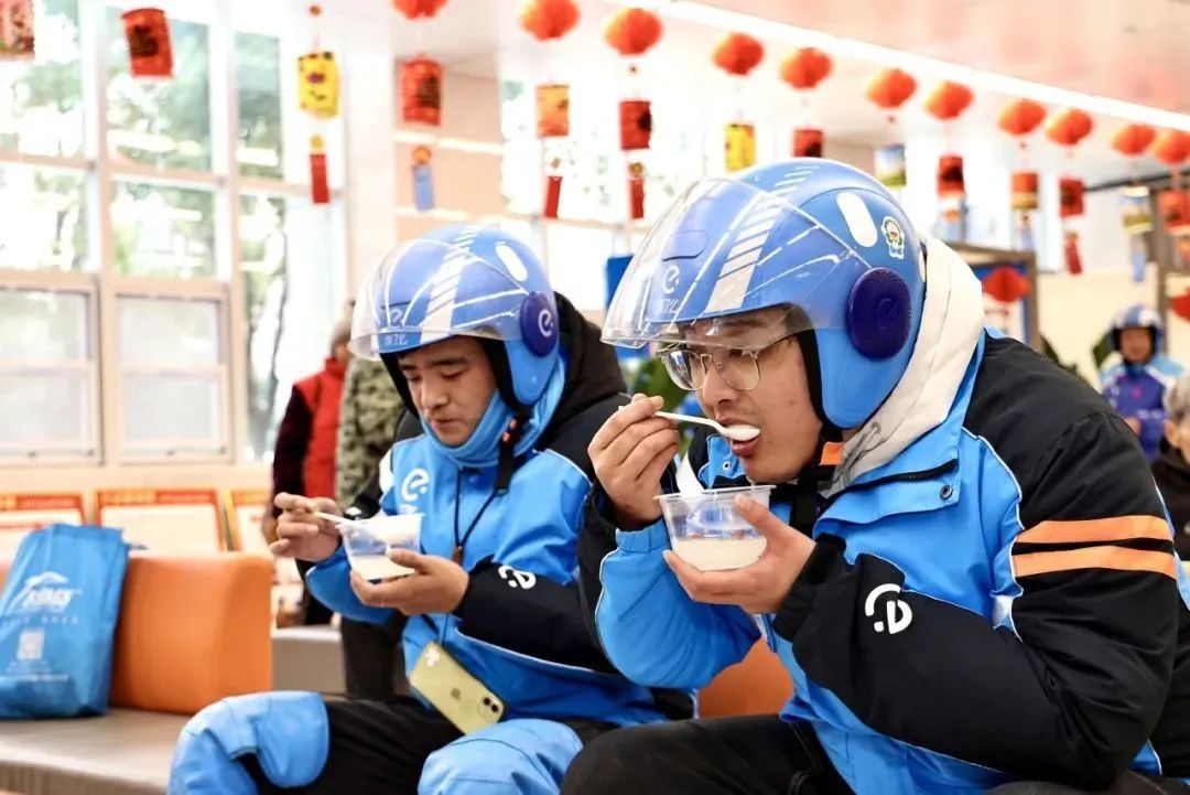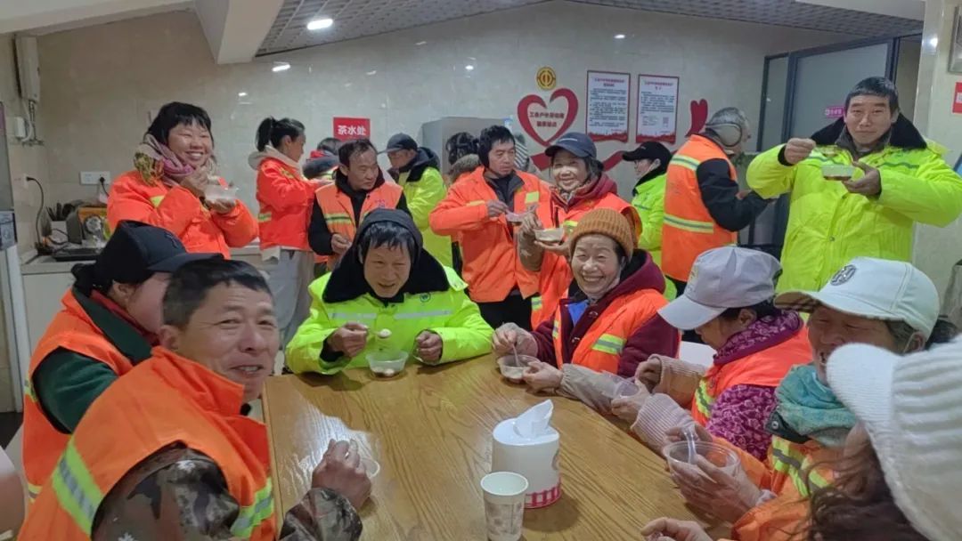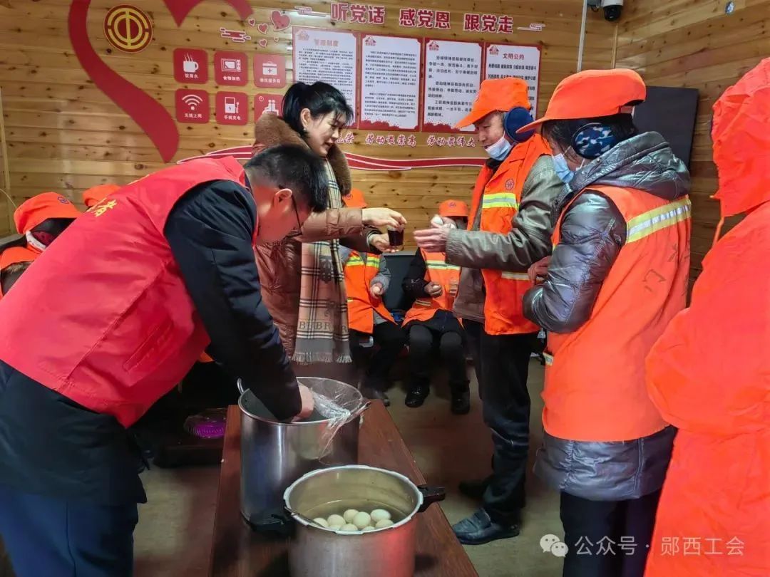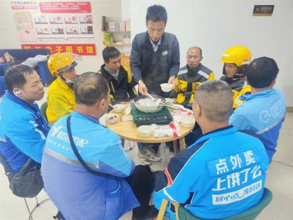 武汉市职工服务中心工会驿站开展“甜蜜小汤圆 驿站大团圆”闹元宵活动,为外卖骑手、环卫工人端上一碗热气腾腾、甜甜糯糯的元宵,扫去风雪中的寒意,让大家暖身更暖心。