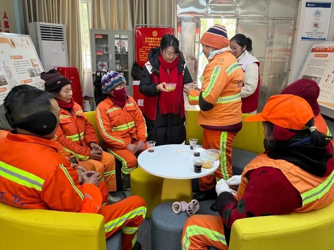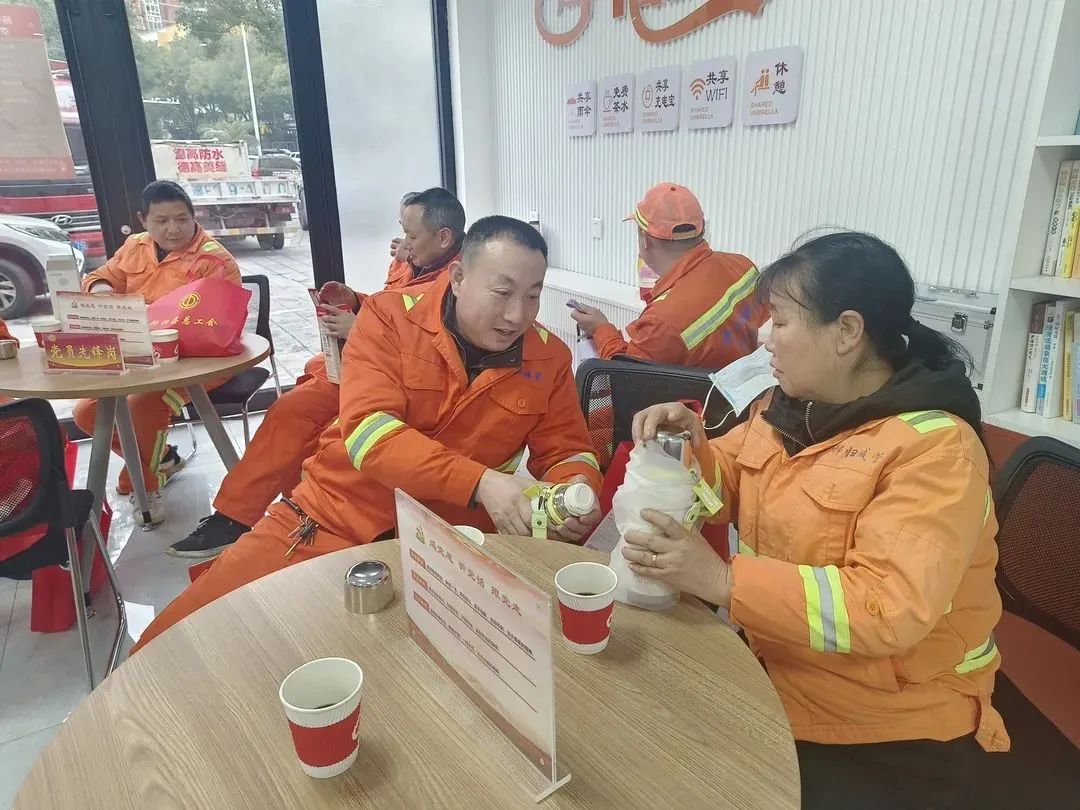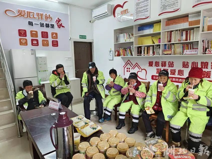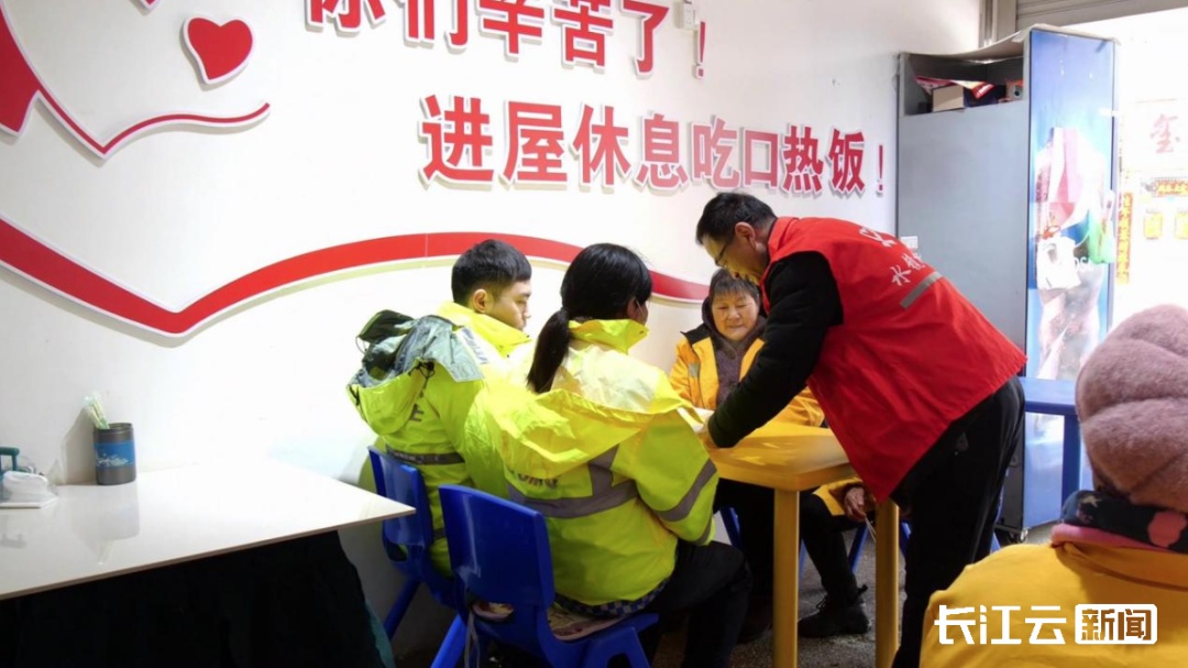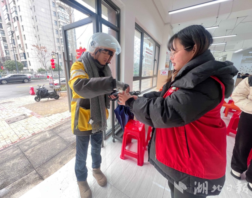 十堰市郧阳区总工会在全区各工会驿站开放暖气、添置暖贴、煮姜茶、冲奶茶,为雨雪天奋战在一线的户外劳动者做好暖心服务。