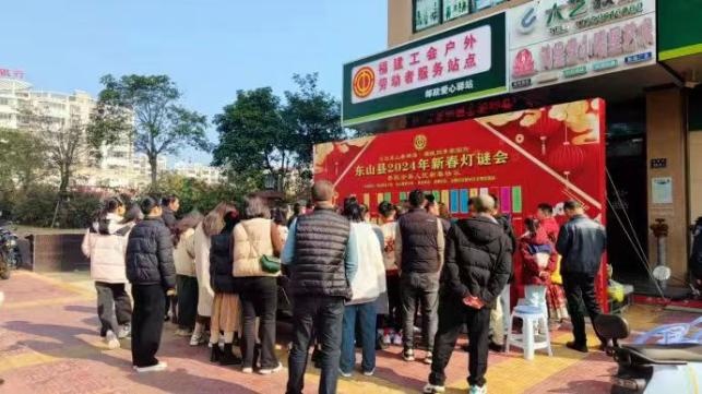 漳州东山县总工会于元宵节上午在工会驿站举办灯谜会,吸引户外劳动者近百人次参加灯谜竞猜。