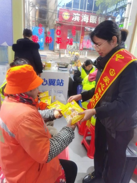 十堰市郧西县总工会在城区工会驿站开展“送温暖、送关怀”系列活动,用心用情为户外劳动者送去暖身暖心服务,为坚守一线岗位的职工、扫雪除冰的志愿群体送上温暖。