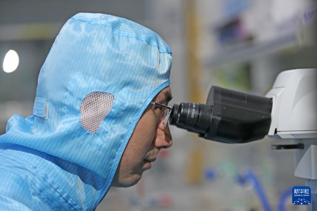 在位于沈阳市的中国科学院金属研究所纳米碳基电子器件超净实验室,孙东明在聚焦光学显微镜前观测实验样品的形貌(2月24日摄)。新华社记者 杨青 摄