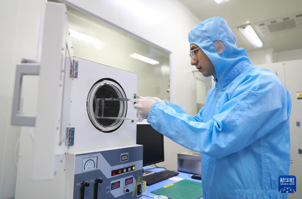 在位于沈阳市的中国科学院金属研究所纳米碳基电子器件超净实验室,孙东明从前处理设备腔体中取出实验样品(2月24日摄)。新华社记者 杨青 摄